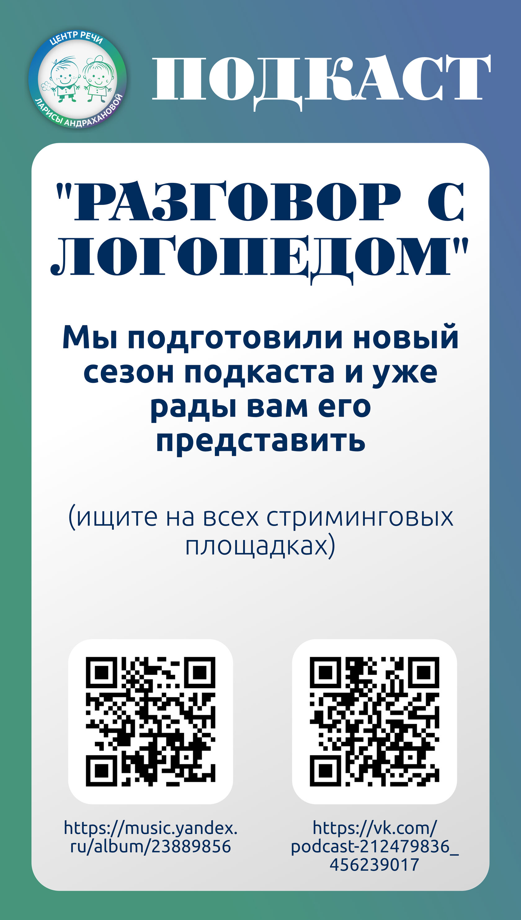Представляем вашему вниманию новый выпуск подкаста, посвящённого развитию детской речи. Лариса Андраханова расскажет, как правильно помогать ребёнку осваивать речь, выявлять возможные проблемы и поддерживать процесс формирования коммуникативных навыков.